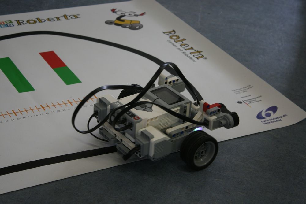 Im Rahmen des Hochschulinformationstages hatten Studieninteressierte (und die mitgenommenen Eltern) ab 13 Uhr die Chance Robotik-Luft zu schnuppern und mit OpenRoberta erst im Simulator und dann am echten Roboter Verhaltensweisen zu programmieren.